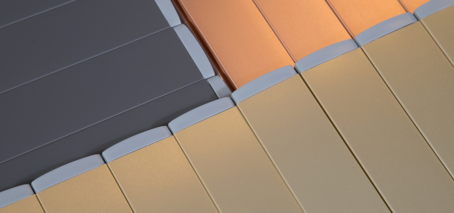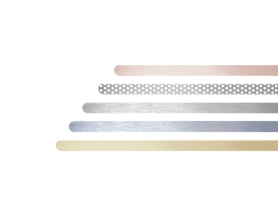 Our beautiful pre-painted palette range from neutral tones like black and white, suitable to match vibrant surface colours, to the intense wood nuances for traditional and classic design solutions.