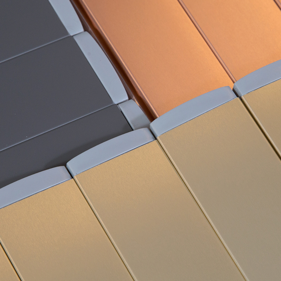 Our appealing anodised colours are obtained from excellent raw materials that guarantee quality and resistence in time.