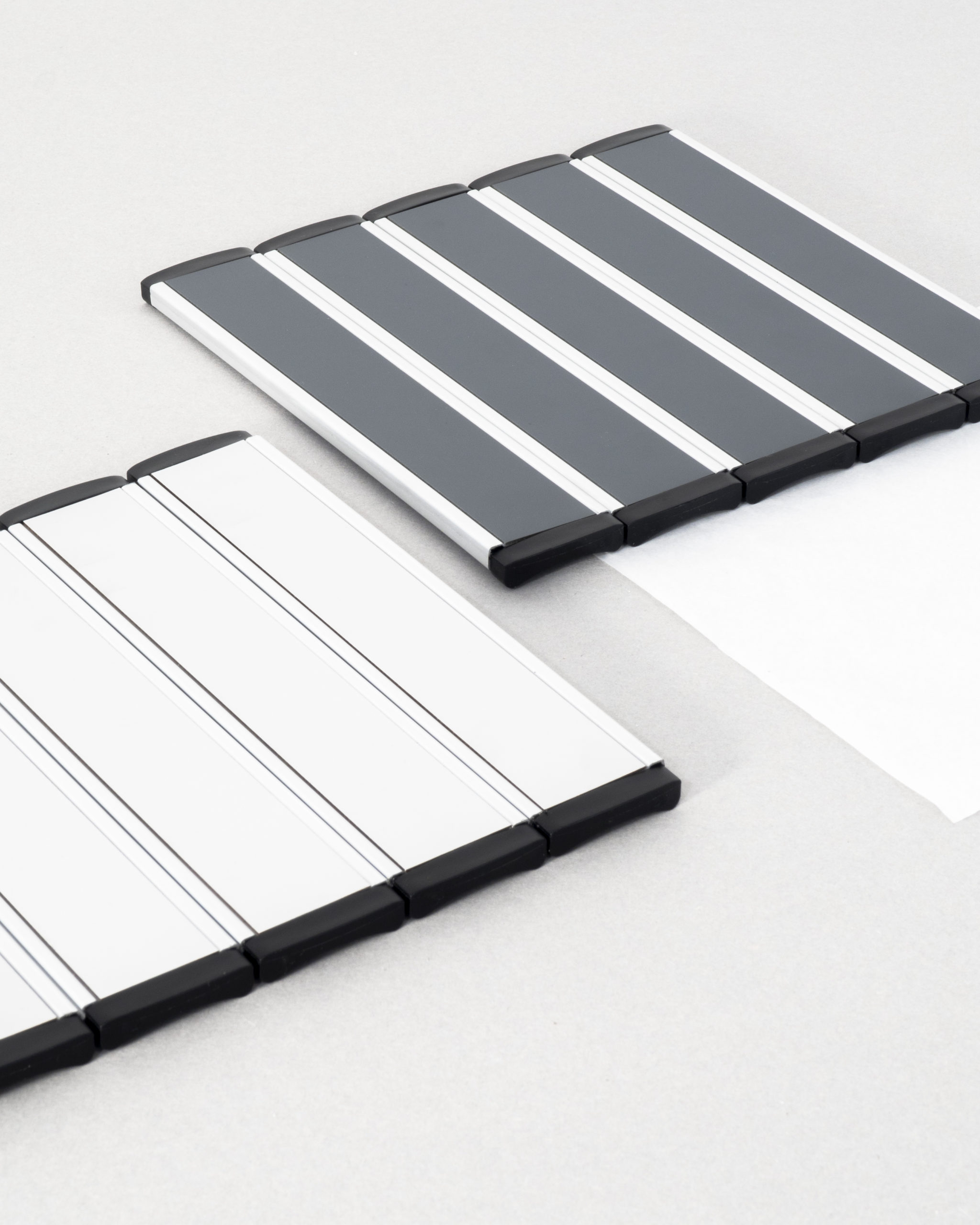 The Soft Collection, created by Gio Tirotto, offers a dynamic and refined version of traditional aluminum tambour doors. This series stands out for the perfect fusion between the elegance of aluminum and Fenix NTM inserts, offering a soft and pleasant tactile sensation. Designed to enhance every type of interior, the Soft Collection enriches the range of finishes offered by FBSprofilati. Presenting twelve combinations of aluminum and Fenix NTM, it allows for creating harmonious combinations or bold contrasts, perfectly adapting to the different style needs of spaces.